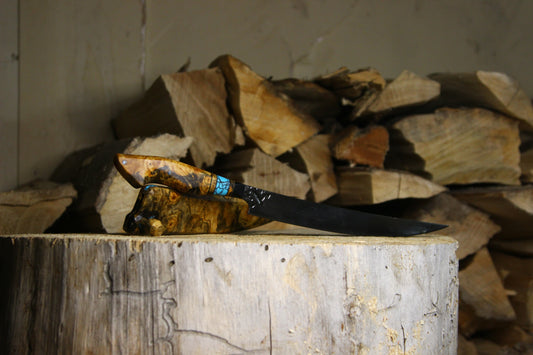 Sold outHand-forged 1084 Honesuki, Walnut