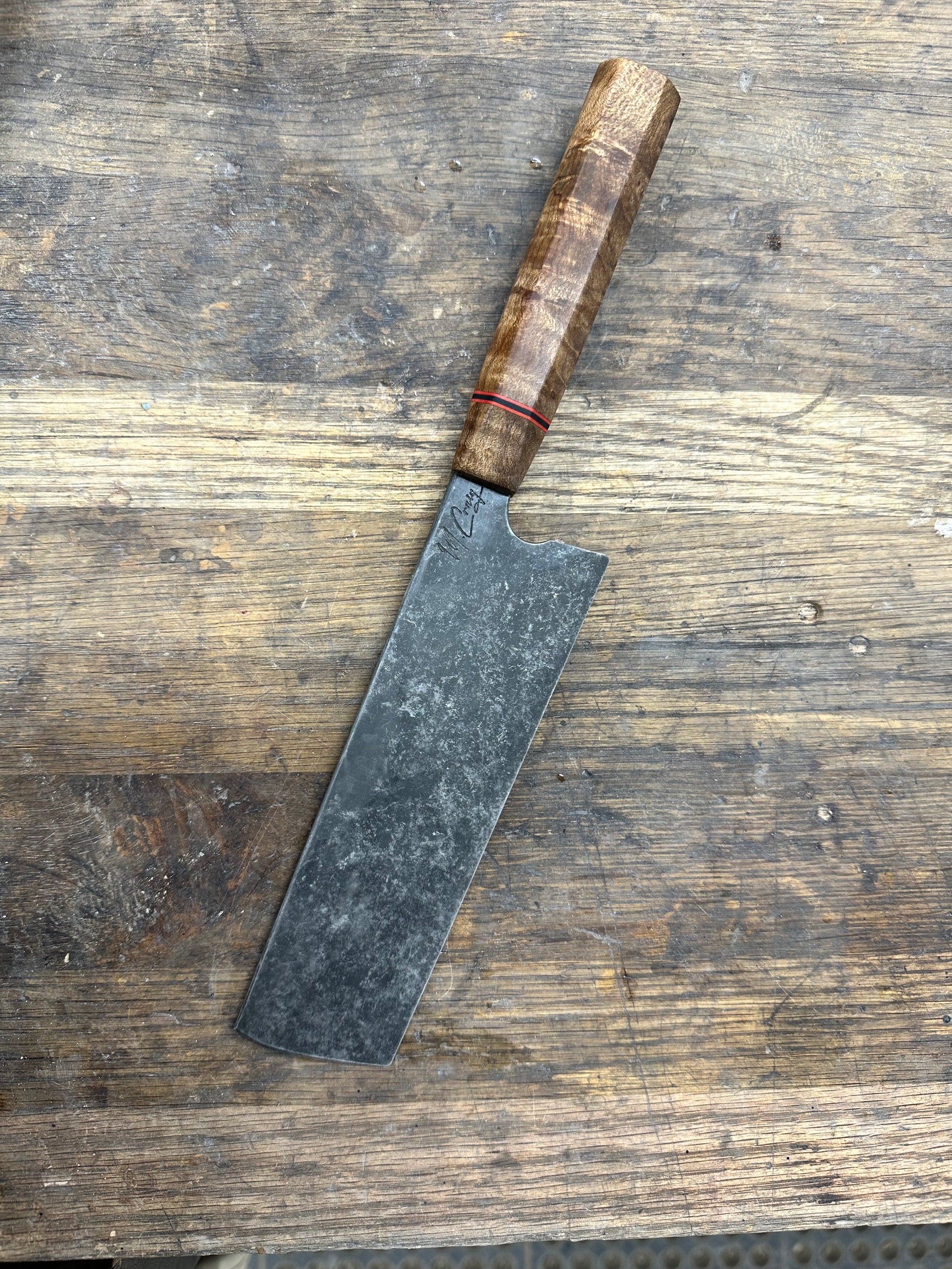 Blade steel: forged 1084 high carbon, stonewashed etched